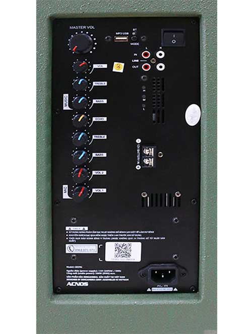 Cổng kết nối: Ngõ ra Line Out,Khe cắm USB nhạc MP3, ngõ vào Line In,