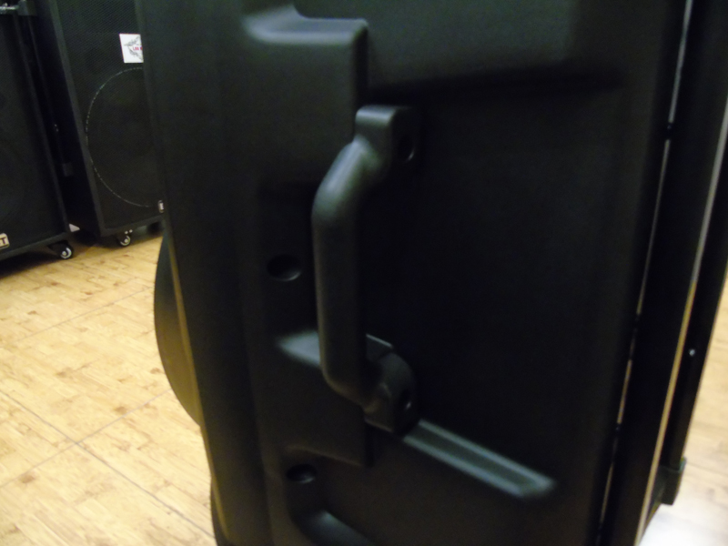 Tính di chuyển chính là điểm nhấn của các dòng sản phẩm này. Kích thước 12kg cùng với kiểu dáng không quá choáng chỗ thì loa còn được trang bị thêm tay nắm ở phía bên mặt phải của loa cho bạn dễ dàng xách đi. Bên cạnh đó là thiết kế 2 bánh xe cùng với tay kéo cho bạn kéo loa đi dễ dàng, cảm giác kéo loa như khéo vali vậy vô cùng tiện lợi.
