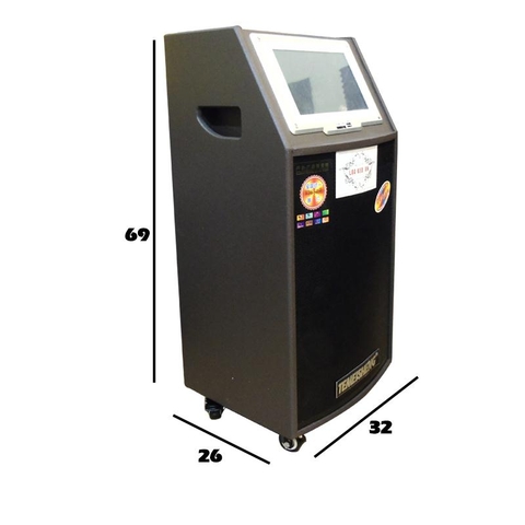 Loa được trang bị màn hình cảm ứng 9 inches tương tự với các máy tính bảng hiện tại với hệ điều hành android 4.4.2 dễ dàng điều chỉnh và có thể kết nối trực tiếp internet wifi để sử dụng các kênh youtube, ikara, thoải mái lựa chọn các bài hát , giai điệu mới nhất mà bạn ưa thích. Bộ nhớ trong của loa đi kèm theo đó là loa bass 30cm đánh cực khỏe khiến những giai điệu sôi động trở nên máu lửa hơn bao giờ hết, treble trong trẻo thánh thót cũng góp phần không nhỏ để nâng cao chất lượng âm thanh mà loa đem lại.