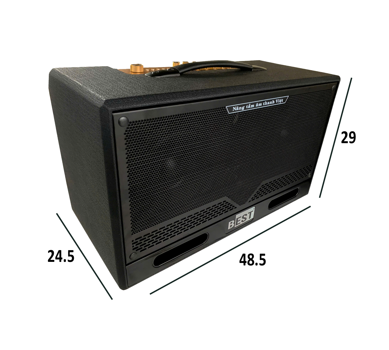 - Kích thước loa: 48.5 x 24.5 x 29 cm